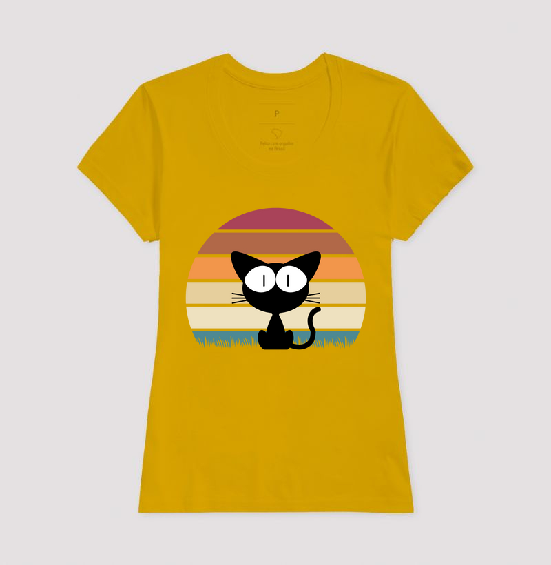 Entre no clima nostálgico com a camiseta Gato Retrô! Inspirada em um estilo vintage com tons quentes e um toque divertido, esta estampa traz um gato de olhos expressivos contra um pôr do sol estilizado. Ideal para amantes de gatos que querem destacar seu estilo descontraído e criativo, a camiseta combina conforto e originalidade em uma peça única. Seja para o dia a dia ou para um look especial, o Gato Retrô é a escolha perfeita para quem quer carregar seu amor pelos felinos com muito charme!